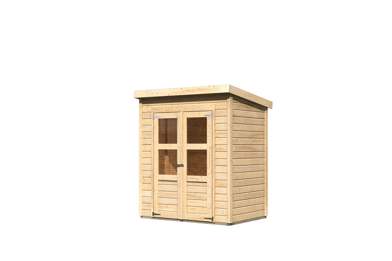 Durch sein naturbelassenes Holz kann es durch einen farblich individuellen Anstrich auf Ihr Gartenambiente abgestimmt werden. Das Gartenhaus Amrum setzt Ihnen hier keine Grenzen. Der Innenraum mit den Maßen (BxT) 175 x 119 cm, bietet ausreichend Platz für Ihre Gegenstände. Das Haus wird von unten mit kesseldruckimprägnierten Bodenbalken geschützt. Von oben bietet das Pultdach Schutz vor der Witterung. Die Doppelflügeltür mit zwei Lichtausschnitten je Türflügel und einer Sicherheitsüberfalle lässt viel Tageslicht in das Innere und bietet so eine natürliche Lichtquelle.
