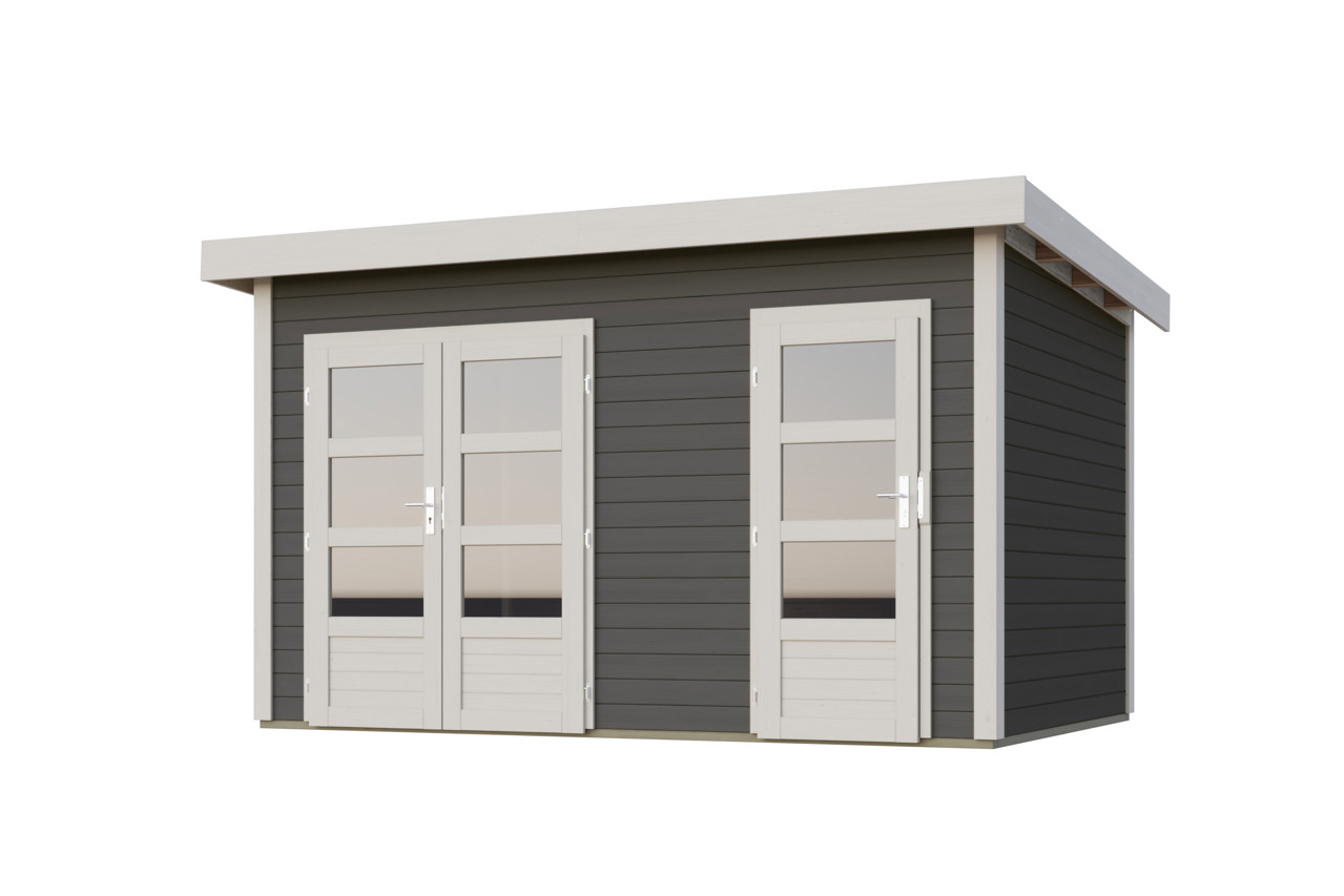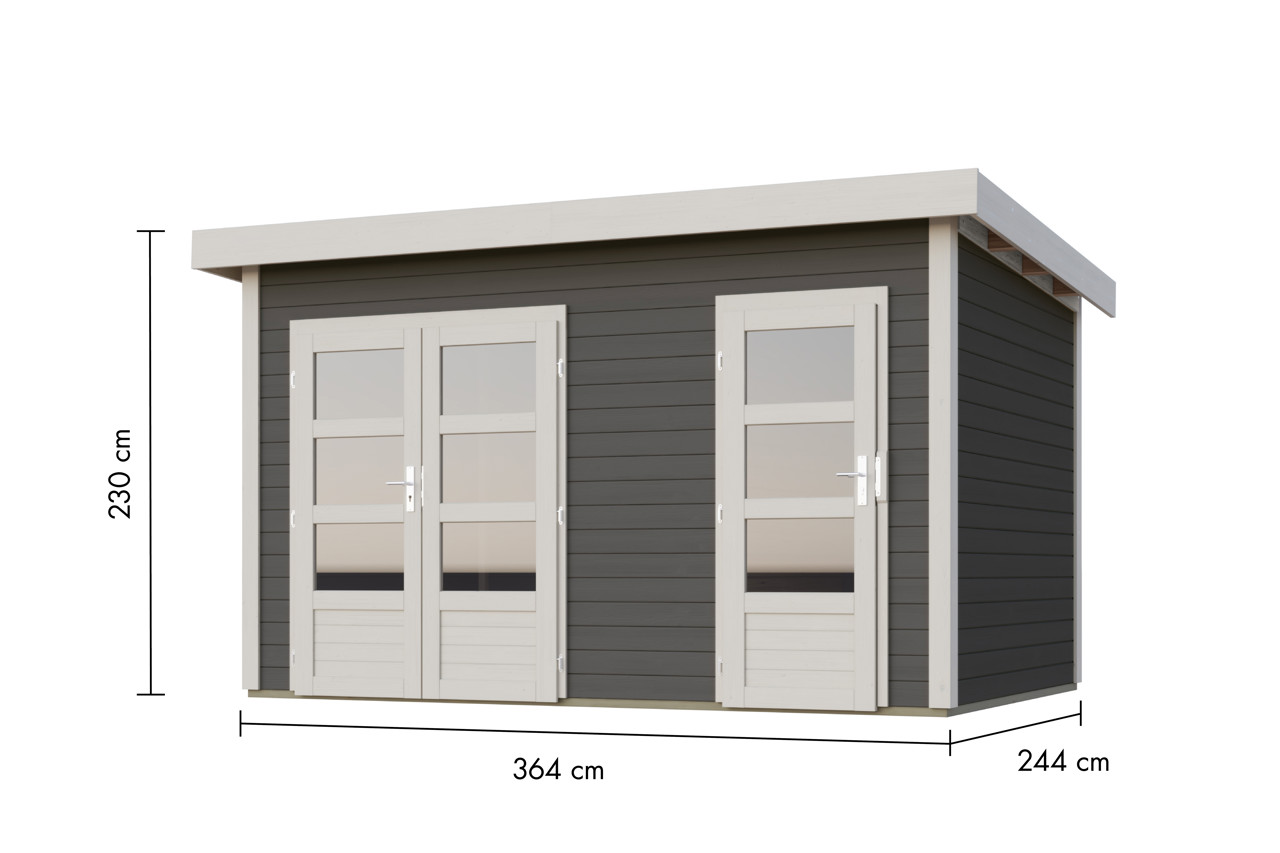 Modernes Flachdach Mittelwandhaus im 28 mm Steck-/ Schraubsystem. Das Gartenhaus überzeugt nicht nur die moderne Optik oder das massive Flachdach inkl. Bitumendachbelag zur Ersteindeckung, vor allem die Trennwand, die das Haus zu einem Zweiraumhaus gestaltet ist ein echtes Highlight. Zwei Räume davon einer mit einer Doppelflügeltür und der andere mit einer Einflügeltür zeichnen dieses Gartenhaus aus. Gemütliches Zusammensitzen und gleichzeitiges Verstauen der Gartenutensilien ist hiermit kein Problem mehr!