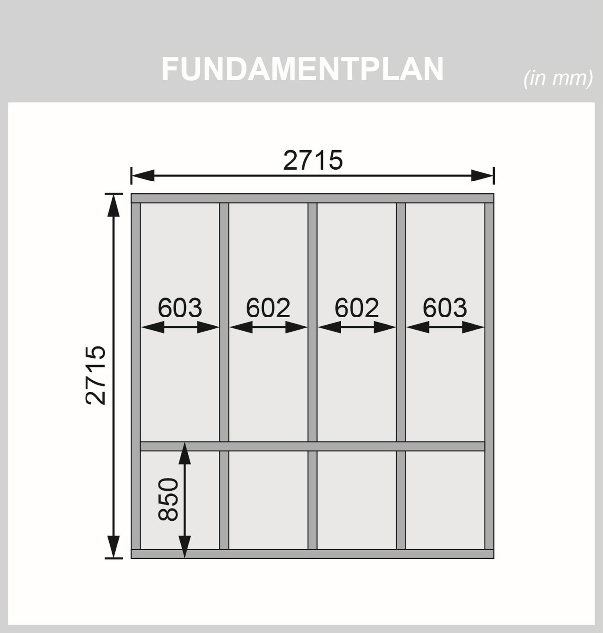 Sockelmaß: 276 x 276 cm, Dachstand: 276 x 276 cm