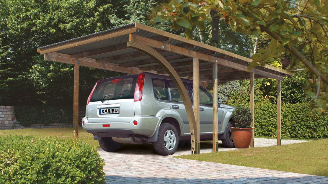 Karibu Carports können durch verschiedene Optionen zu absoluten Multitalenten aufgerüstet werden. An der Grundstücksgrenze bietet sich eine Seitenwand an. Wenn Winterreifen, Mülltonnen oder Fahrräder untergebracht werden sollen, ist ein Geräteschrank, der unter das Carport gebaut wird, ideal. Einfahrtsbögen sorgen für eine Ansprechende Optik und sind praktisch zum Einparken.