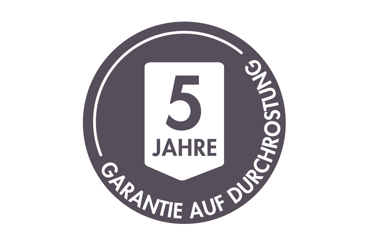 Die hochwertige 25 μm Polyesterbeschichtung bildet eine geschlossene Schutzschicht und sorgt für vollständigen Witterungsschutz. Sie profitieren von dauerhaftem Korrosionsschutz, einer farbstabilen Oberfläche und minimalem Wartungsaufwand. Auf die Durchrostung des Materials erhalten Sie eine 5-jährige Garantie.