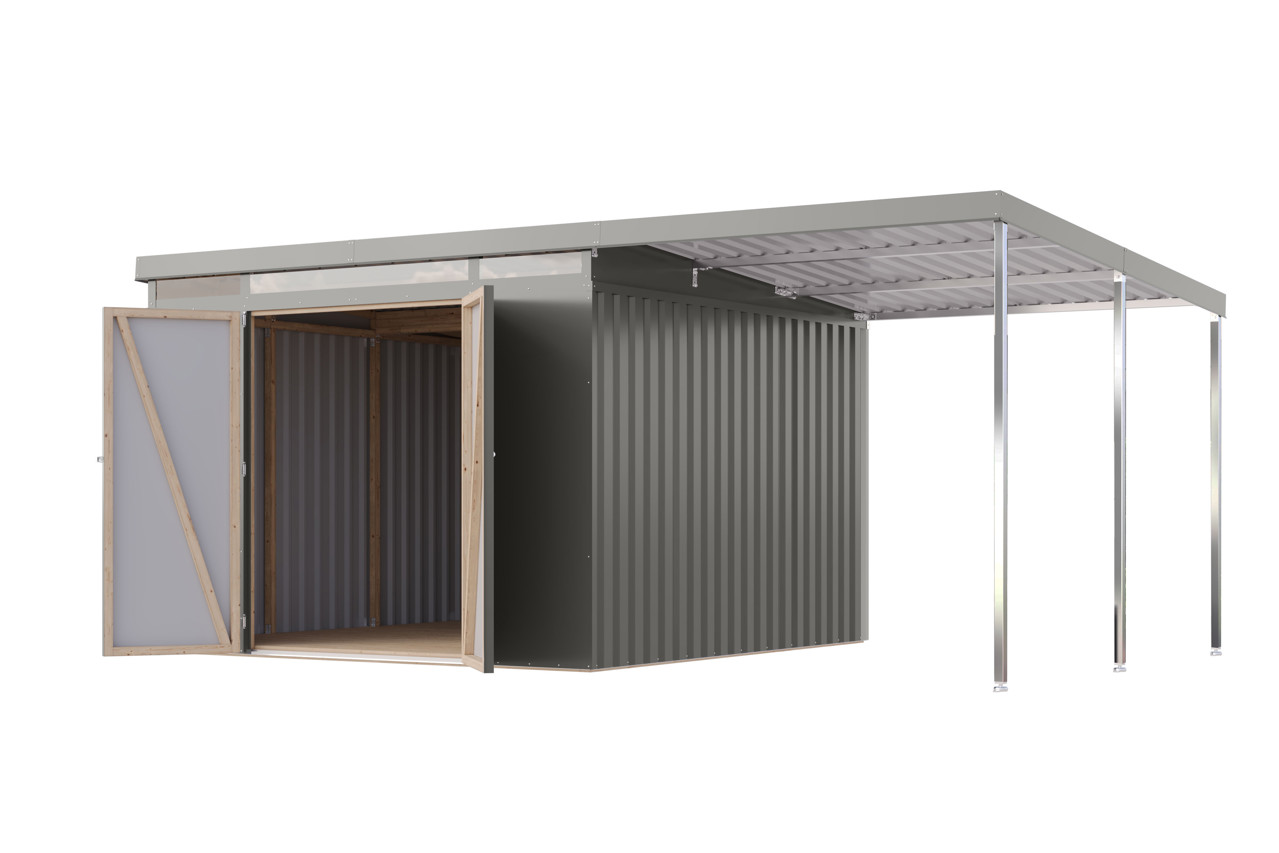 Karibu Metall Gerätehaus Iridium 3,5 graualuminium mit Anbaudach