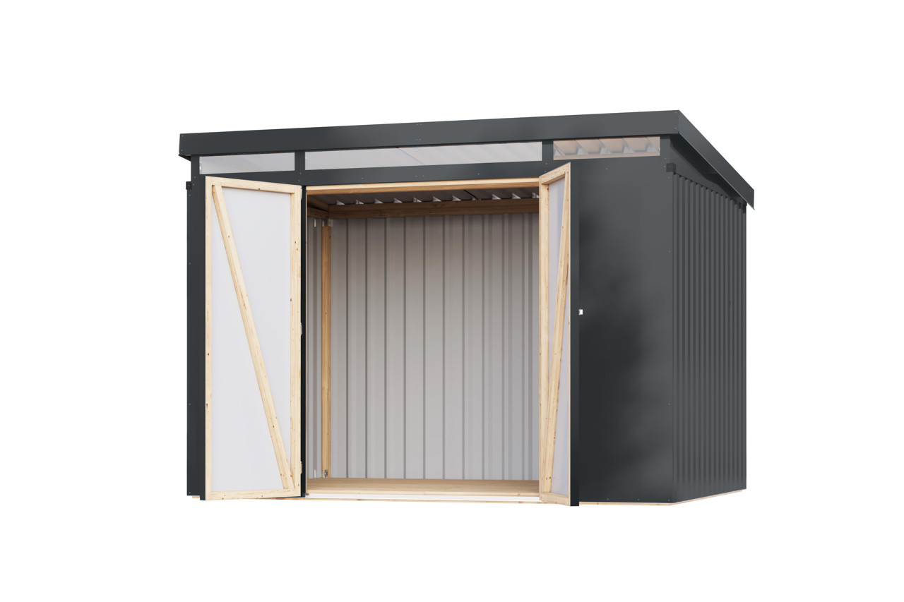 Das Metall Gerätehaus Iridium bietet eine langlebige und praktische Aufbewahrungslösung für Ihren Garten und überzeugt durch Stabilität, modernes Design und eine komfortable Nutzung.